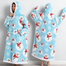 เสื้อสเวตเตอร์มีฮู้ดผ้ากำมะหยี่นุ่มสวมใส่ได้สำหรับตั้งแคมป์ผ้าห่มขนแกะเชอร์ปามีฮู้ดน่ารักผ้าห่มมีฮู้ดขนาดยักษ์