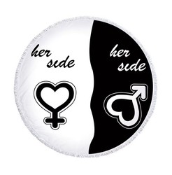 Özel tasarım hediye ile 60 inç yuvarlak mikrofiber plaj havlusu püskül Trimn köpek yan benim yan pet-ilham tasarım Roundie havlu