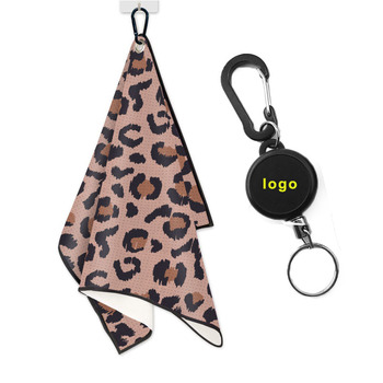 Hızlı kuru mikrofiber golf el havluları yüceltilmiş leapoard golf kulübü havlu geri çekilebilir halat ile